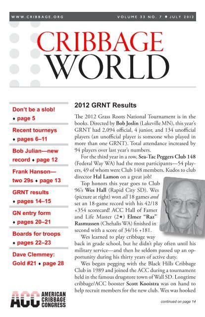 Cribbage World July 2012 In Pdf Format American Cribbage