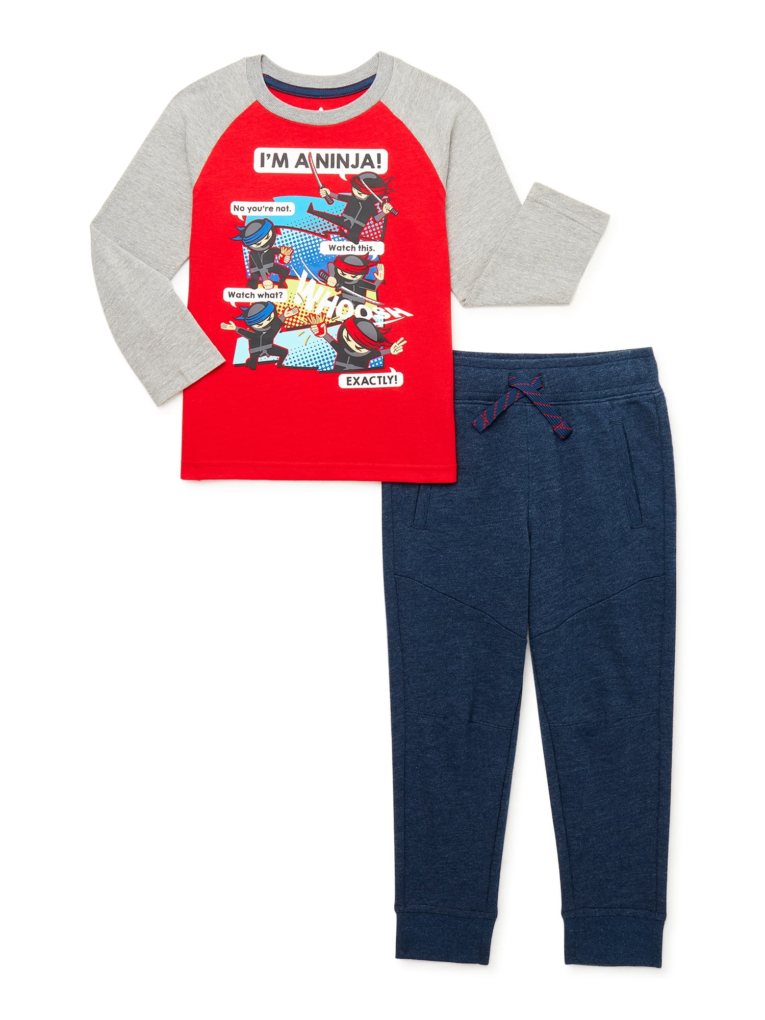 365 Kids From Garanimals Boys Ninja Long Sleeve Raglan T Shirt And French Terry Joggers 2 Piece Outfit Set Sizes 4 12 Walmart Com